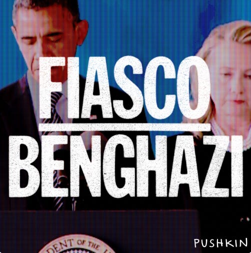 Leon Neyfakh does some of the best history storytelling. He is the one behind Slow Burn and Fiasco and and a bunch of other stuff that I donât write about because some of it is behind an Audible paywall, but Iâm starting to rethink that no-paywalled stuff now. Anyways last week two episodes of the new season of Fiasco about Benghazi dropped and after listening I immediately emailed Leon and said please send me moreeeee. I dropped everything to finish itâitâs a very detailed and contextualized look at something I know embarrassingly little about. Leon mentions at one point that to him Benghazi wasnât a place but a scandal, andâŚexactly. Others think of it as an overblown distraction or sinister conspiracy. We all have been, and still are, sorting through its aftermath and how Benghazi explains whatâs been happening re: political warfare over the last 20 years. What was Americaâs mission in Libya, anyway? What are we missing from this story? How did it impact the 2016 election? Why did Chris Stevens have to die that night? I donât know a lot about good podcast reviews but I do know they donât just have a list of questions, but these are all questions that I felt too stupid to ask before listening. I was worried Iâd be overwhelmed by this subject. But these are questions Leon is able to steer us through using really good storytelling and interviews with not just experts but primary sources. Now I feel like a GENIUS. Howâs that for a podcast review? I blew through episodes one and two but episode three gripped me by the throat. I was holding my breath during Leonâs interview with Special Agent Scott Wickland about the night in question. (He remembers saying, âIf they blow the locks off Iâm gonna start shooting and when I die I want. you to pick up my rifle and keep fighting.â) In an interview with woman who risked her life for the revolution, she describes her chants for Libya as a poem, a love song to her country which she loves and is willing to die for. And for the first time I thought, that is a bravery I never thought Iâd have to have in the US but now I think of it as a privilege Iâm not sure I have anymore. At a certain point people have nothing to lose and they become impossible to ignore. Brace yourself for hearing ads read by Malcolm Gladwell, if anything heâs said lately has upset you.
